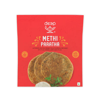 Lightly spiced and perfectly layered, Deep Methi Parathas are pre-cooked and frozen for convenience — ready to heat and serve in just minutes. Pair them with curd, pickles, or curries for a comforting, authentic Indian meal anytime.