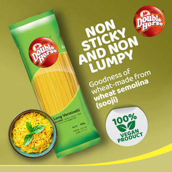 Made from premium wheat, Double Horse Long Vermicelli is ideal for traditional Indian sweets like payasam and kheer, or savory delights like upma and pulao. Easy to cook and firm in texture, it brings authentic taste to every dish.